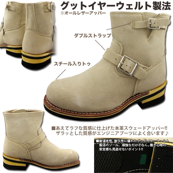 グッドイヤーウェルト製法の本革スエード素材☆ショートエンジニアブーツ!