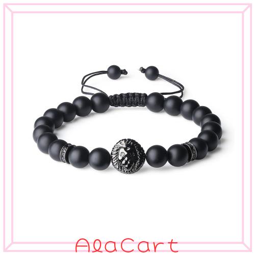 ◆商品名:[コアイ] マットオニキス ライオンモチーフ 成功成就パワーストーンブレスレット 祈り腕輪数珠 長さ調節可能 メンズ レディース