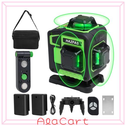 レーザー墨出し器、墨出しレーザー、4Dグリーンレーザー墨出し器、4x360°、水平器 レーザー ビルドとアライメント用、充電式バッテリー