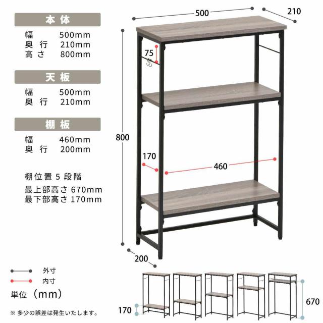 【可動棚2枚:12.5cmピッチ5段階】
