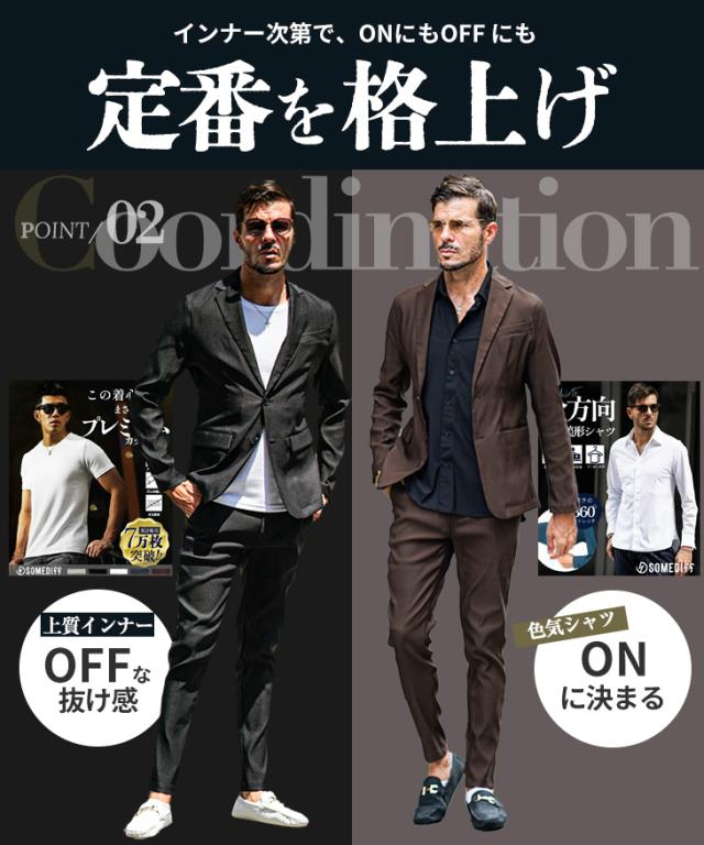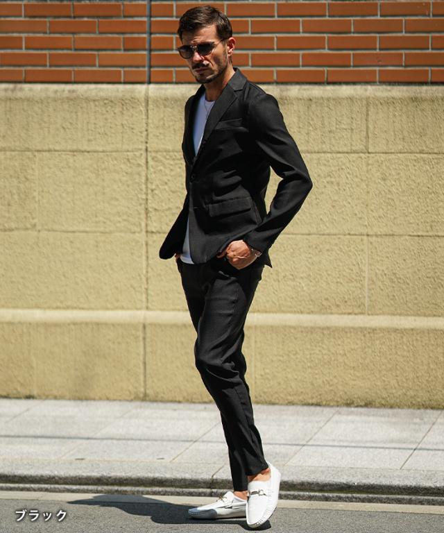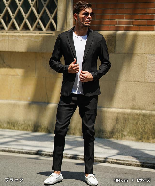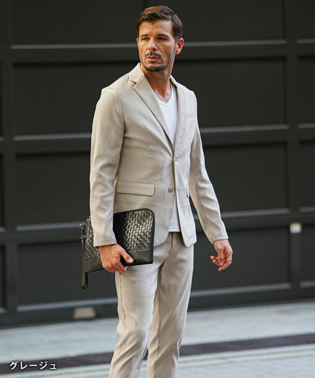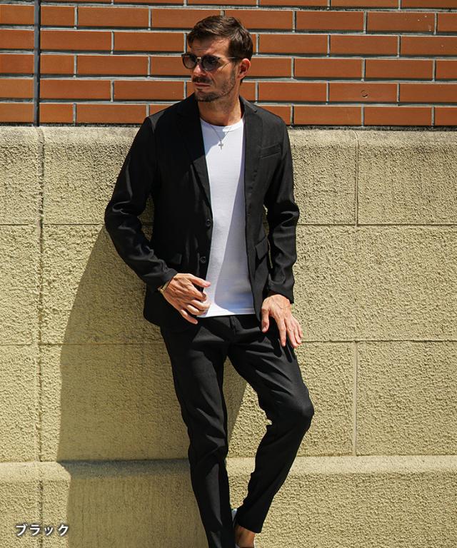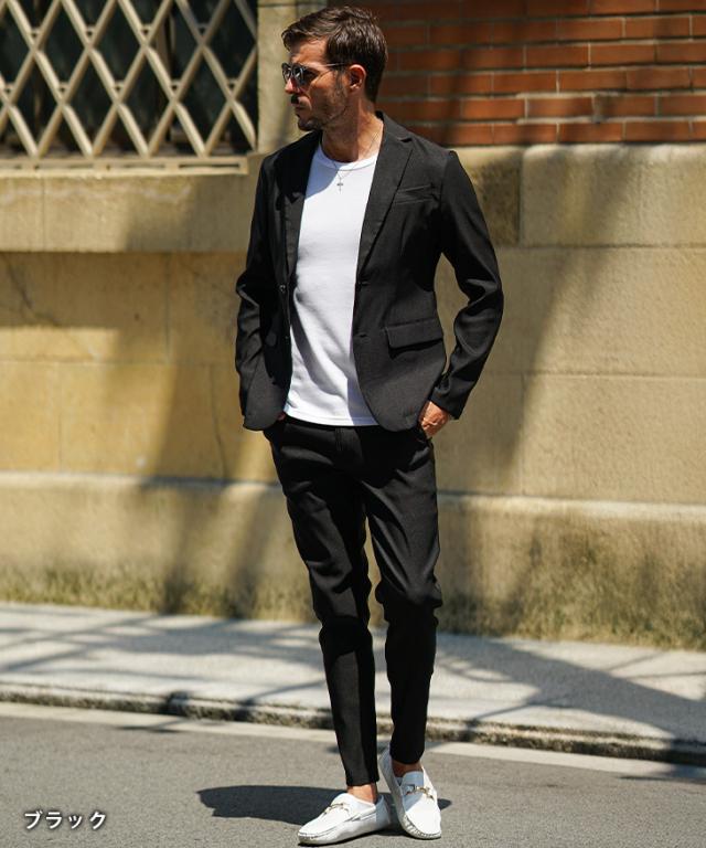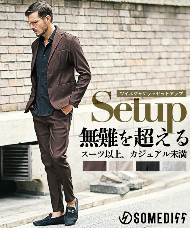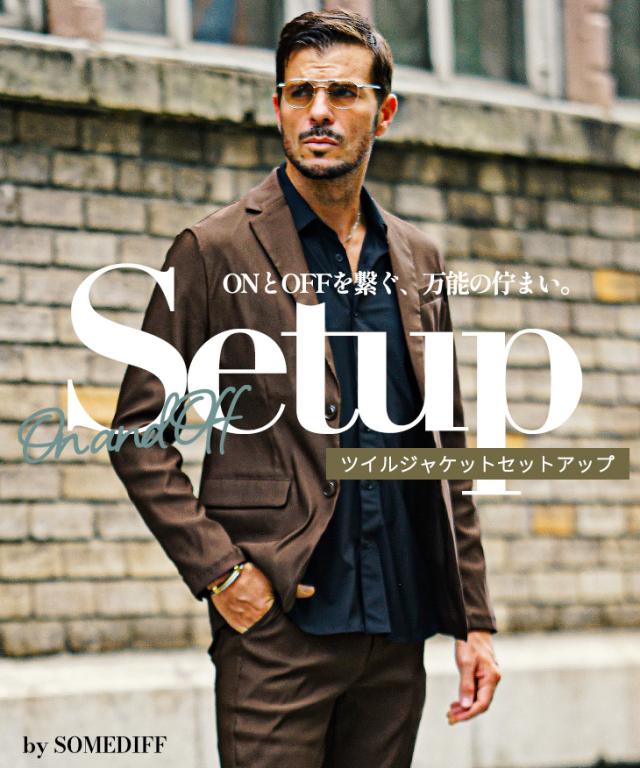 SOMEDIFF(サムディフ)『ストレッチツイルテーラードSETUP』【ストレッチツイルテーラードセットアップ】■Design / デザインジャストシルエットのテーラードジャケットと、スリムながらも程よい余裕を残したスキニーパンツのセットアップ。羽織るだけで大人らしい品のある雰囲気をつくり出し、オンオフ問わず幅広いシーンで活躍します。2つボタンのジャケットは、シャツと合わせればビジネスカジュアルに、カットソーなら抜け感のある休日スタイルに。パンツは前開きジップ仕様で実用性が高く、大きめのポケットも備えています。上下を揃えて着ることで統一感が生まれ、シンプルながらきちんとした印象を与えてくれます。