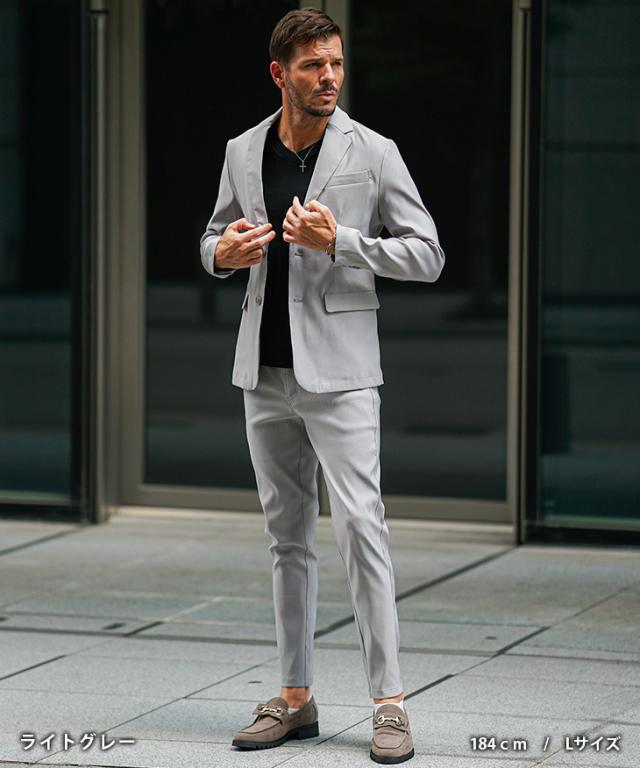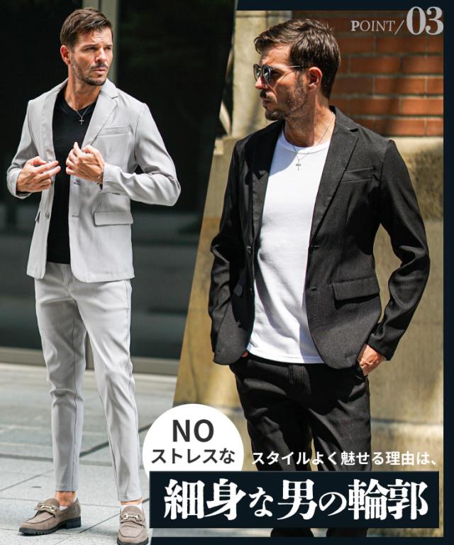 セットアップ メンズ 秋冬 スリム ブランド ジャケット 上下セット ストレッチ テーラードジャケット メンズ 伸縮 タイト スリム 細身 スキニーパンツ チノパン ウエストゴム 洗える ウォッシャブル スーツ きれいめ ビジカジ 新作 秋 秋服 秋物 秋新作 joker ジョーカー