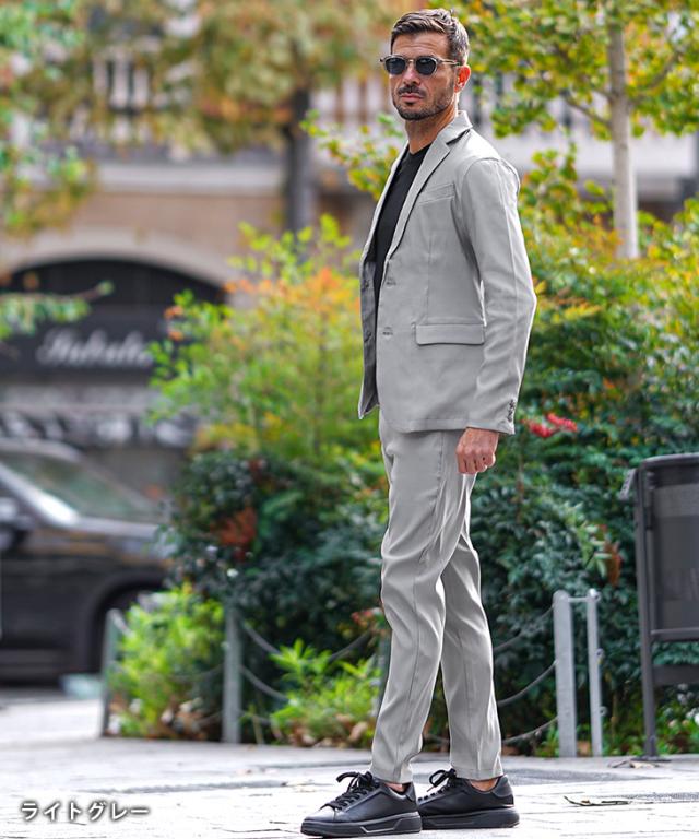 セットアップ メンズ テーラードジャケット スリム ジャケット 上下セット ストレッチ メンズ 伸縮 タイト スリム 細身 スキニーパンツ ウエストゴム 洗える ウォッシャブル スーツ きれいめ ビジカジ 新作 春 春服 春物 春新作 joker ジョーカー