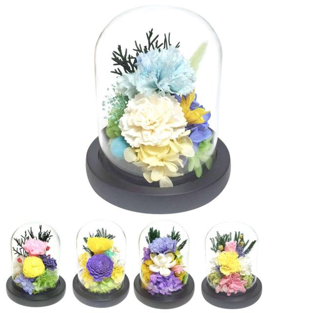 供え花 仏花 ガラスドームアレンジメント プリザーブドフラワー 桃音 ( 造花 ブリザードフラワー 枯れない 仏壇 ドーム お供え 花 フェイクフラワー 供花 御供え 枯れない花 水換え不要 夏 人工 お盆 お彼岸 お墓 法要 法事 仏具 )