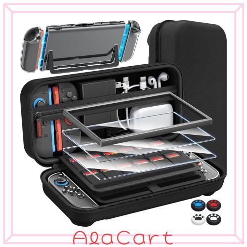 【新登場-14in1】Switch 2 専用 ケース 収納スイッチ2 ケース+ガラスフイルム ガイド枠付き 2枚+スティックキャップ4枚+分体式設計 PC