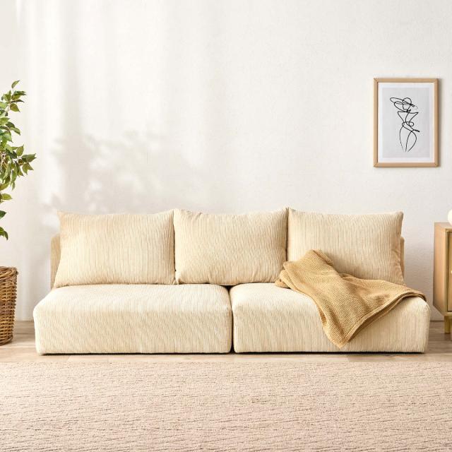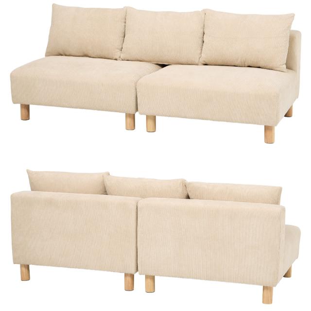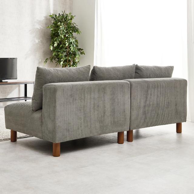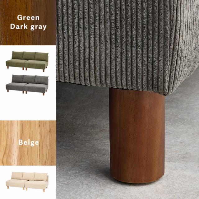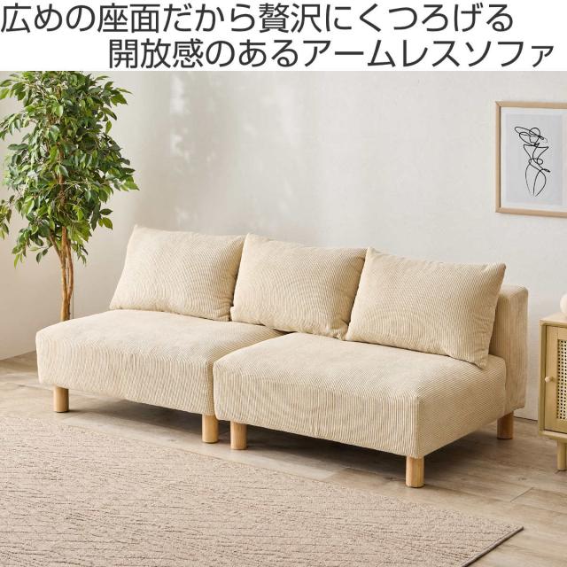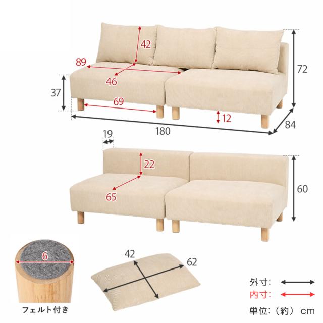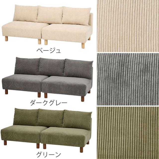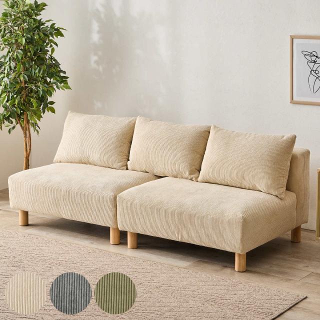 ソファ 2人掛け 幅180cm コーデュロイ生地 ゆったりソファ ( ソファー リビングソファ 座面広い 脚付き 脚 木製 天然木 取り外し クッション ローソファ セパレート ワイド アームレス フェザー入り フロアソファ おしゃれ )