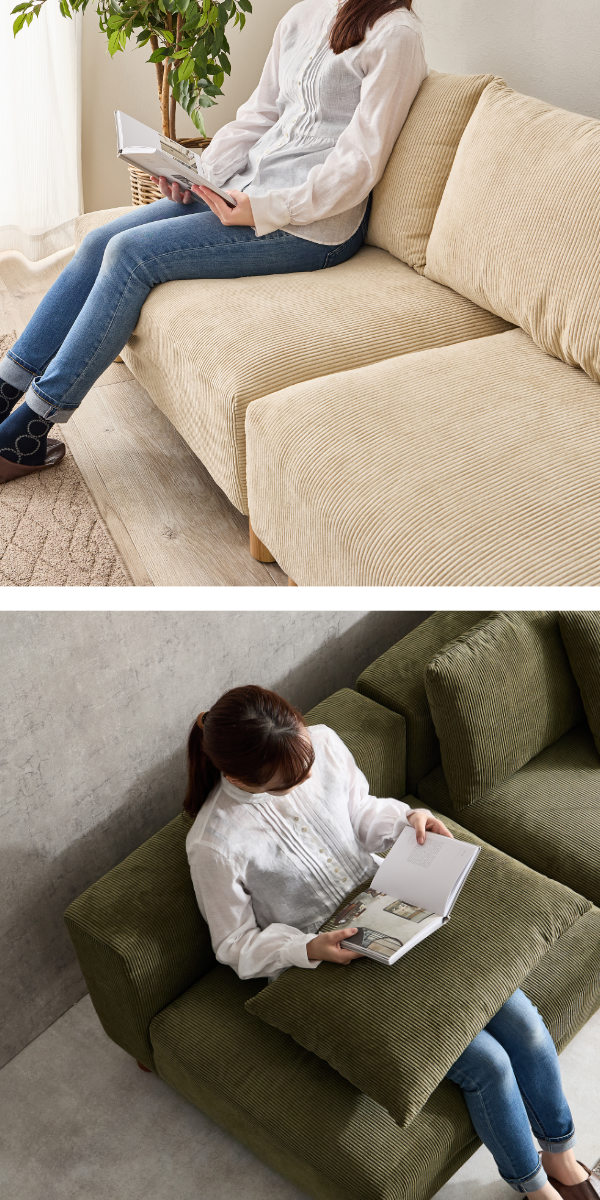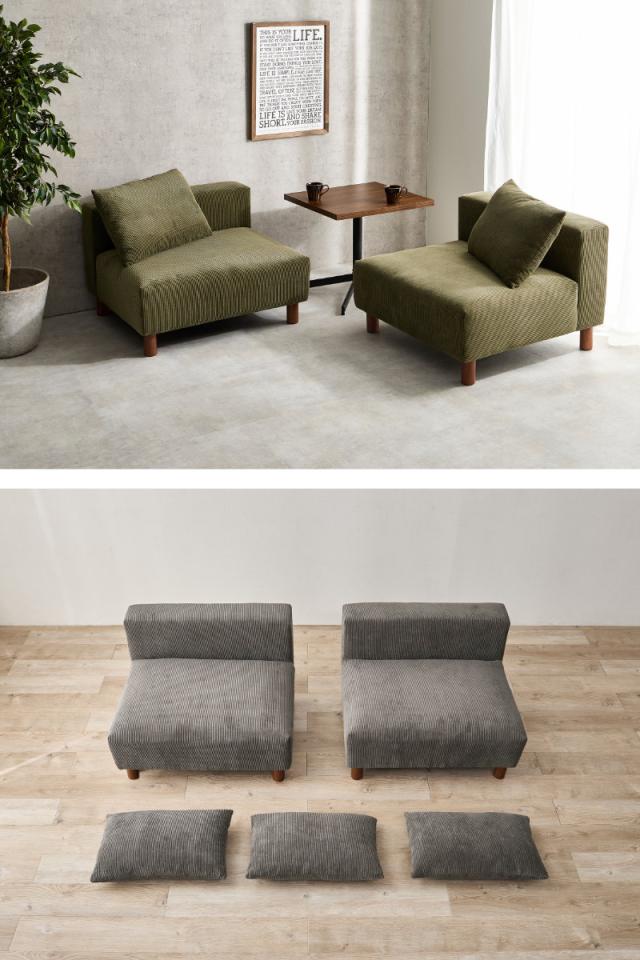 《 ファブリック コーデュロイ あぐら 昼寝 座面 幅広 疲れにくい お掃除ロボット スタイリッシュ リビング オシャレ お洒落 家具 インテリア 二人掛け 1人掛け 一人掛け レイアウト ベージュ グレー グリーン 》