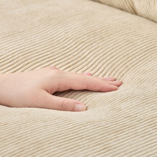 表面の凹凸が特徴のコーデュロイ生地を使用しています。つい触りたくなるような、滑らかな手触りも魅力のひとつです。