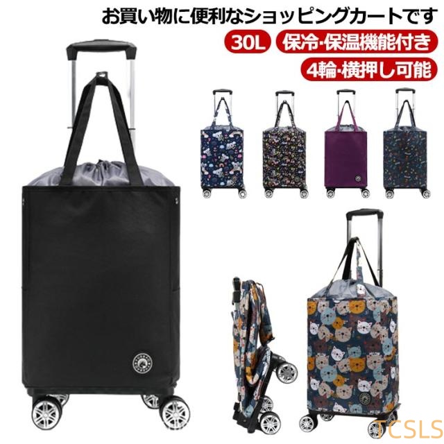 ショッピングカート 30L 折りたたみ 4輪 横押し 軽量 保冷 保温 ショッピングバッグ キャスター付き 巾着 キャリーバッグ キャリーカート 買い物カート ショッピングキャリー エコバッグ 防水 撥水加工 敬老の日 プレゼント 保冷バッグ お買い物