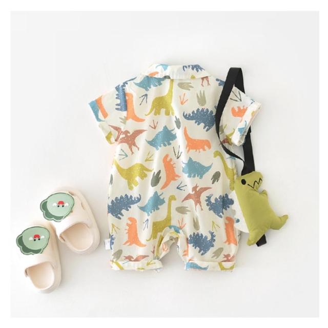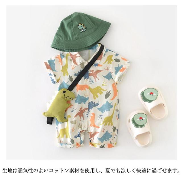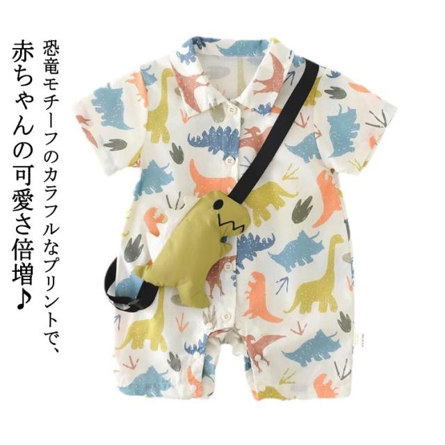 【恐竜ぬいぐるみショルダー付き】カバーオール 夏 ベビー 【恐竜ぬいぐるみショルダー付き】カバーオール ロンパース 女の子 恐竜柄 新生児 春 男の子 赤ちゃん かわいい ベビーウェア 出産祝い プレゼント ギフト 夏服 66/73/80/90