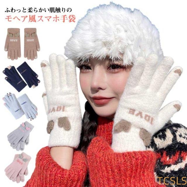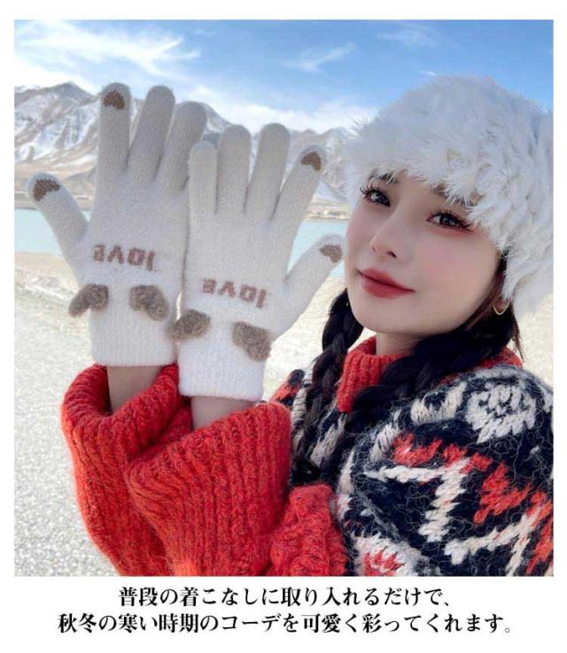 タッチパネル 手袋 ファー リンクコーデ スマホ対応 ニットグローブ 五本指 レディース グローブ 送料無料 ボア ふわふわ もこもこ 耳付き 送料無料 秋 冬 防寒 かわいい キュート おしゃれ