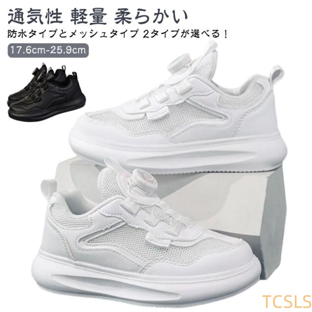 スニーカー 幅広 スニーカー 女子 男子 ダイヤル式 男の子 小学生 運動靴 女の子 防水タイプ ダイヤル式 通学 通園 運動 紐なし メッシュタイプ 軽量 ランニング スポーツ 子供 中学生 柔らかい スクールシューズ ジュニア 梅雨 ホワイト ブラック 白