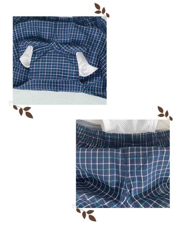 尿漏れパンツ 3枚組 失禁パンツ 失禁トランクス メンズ 中失禁 おしりまで安心 お尻パッド付き 男性用 ロングパッド 綿 コットン 前開き チェック柄 下着 介護 通気性 旅行 入院 お出かけ 外出 お散歩