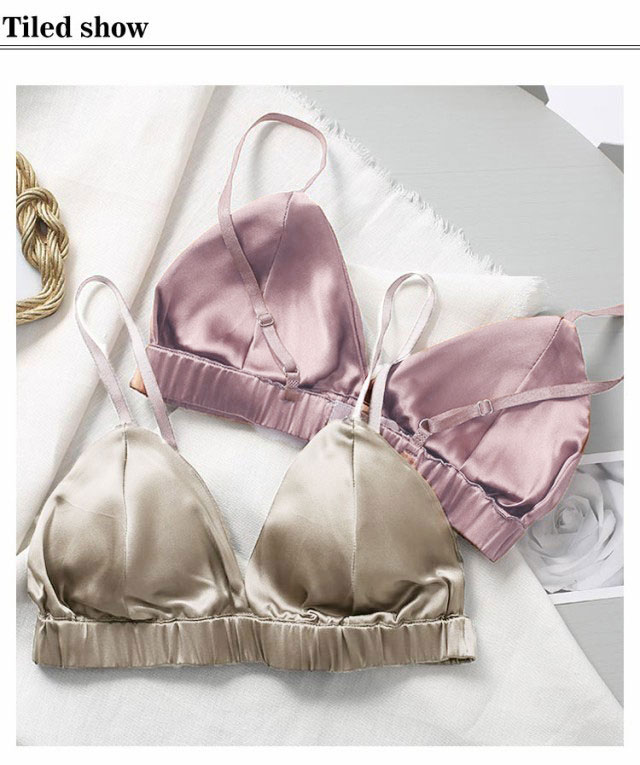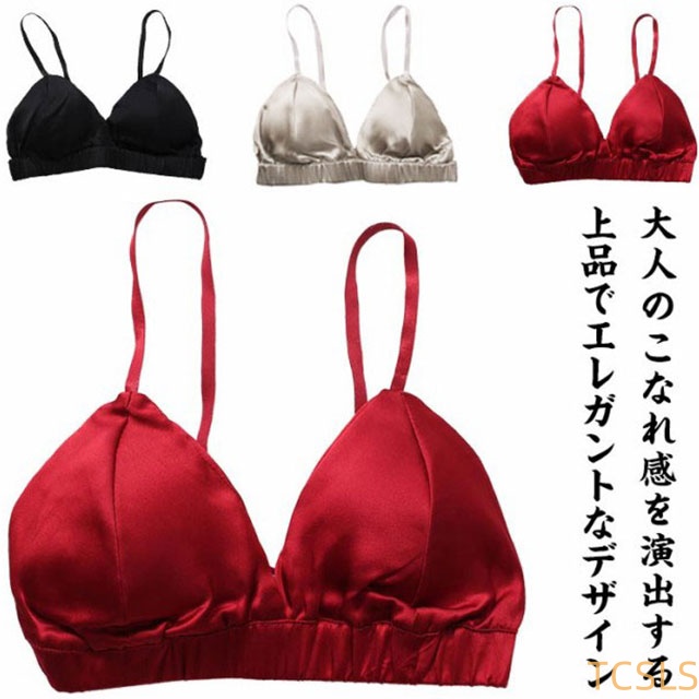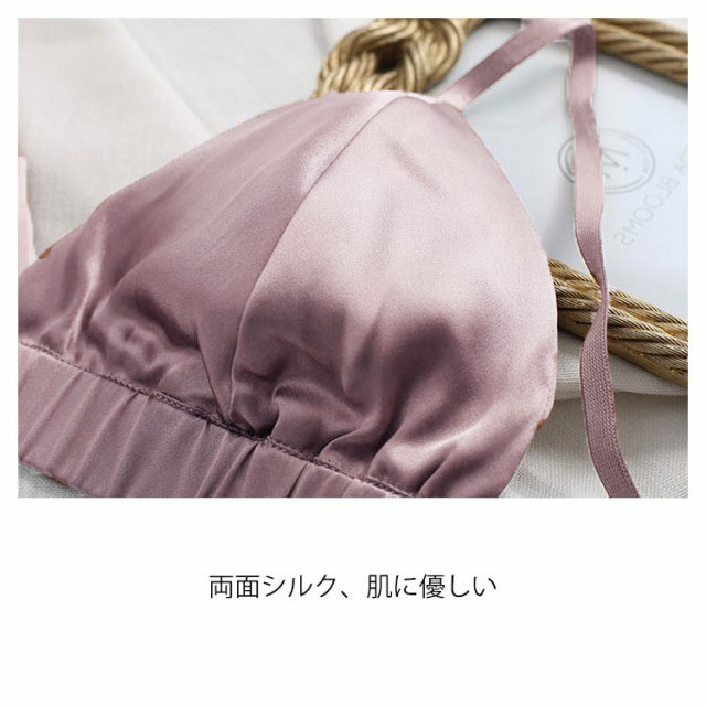 シルクストレッチサテン ブラレット シンプル カシュクール パッド ブラジャー ブラトップ ノンワイヤー 無地 三角ブラ 送料無料 大人のこなれ感を演出する上品でエレガントなデザイン