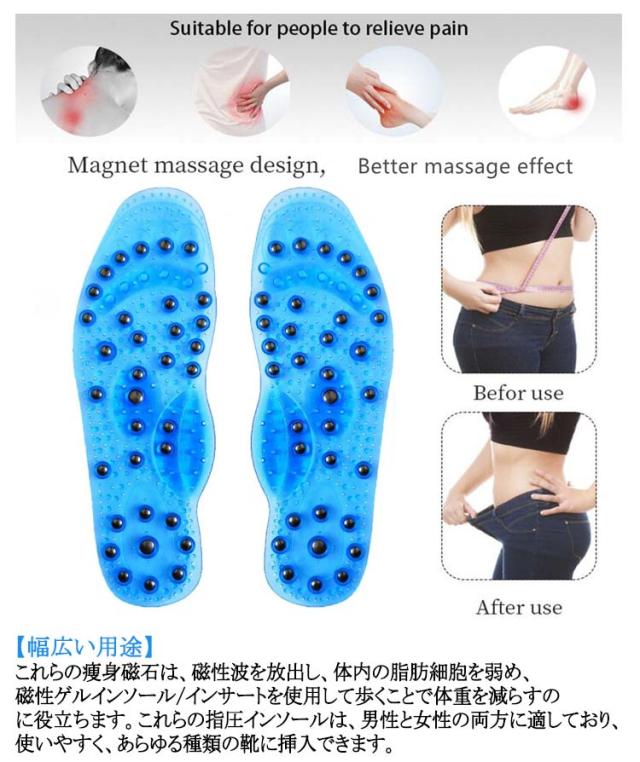 マッサージ 磁気インソール 中敷 指圧マッサージ 健康 衝撃吸収 グッズ コンフォートパッド 指圧療法 指圧マッサージ フットケア 足指圧ポイントセラピー 足ツボ 脂肪燃焼を助け 消臭 血液循環改善 中敷 男性 女性 足裏ツボ グッズ
