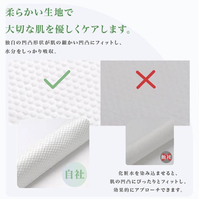 顔に軽く当てるだけでしっかりと吸水可能、こする必要が無く肌に優しい使用感。