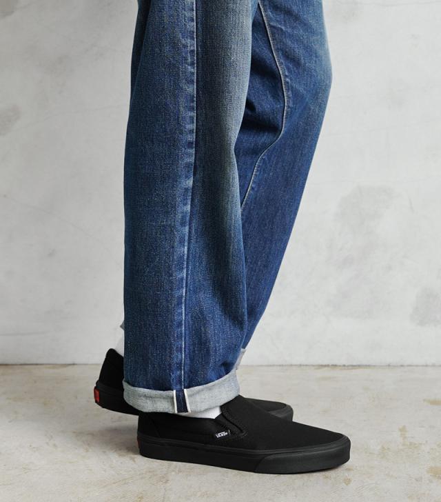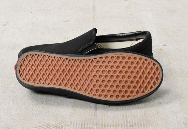1979年にリリースされ瞬く間に南カリフォルニアでアイコンシューズとしての地位を確立した「SLIP-ON」。その名の通り足を滑り込ませるだけで履けるシンプルで快適なデザイン。履き口の両サイドにゴムを配置することでフィット感と着脱のしやすさを両立しています。フラットなソールにはVANSの特徴の一つであるワッフルソールが備えられ、他にはない高いグリップ力を発揮します。耐久性の高いキャンバスアッパー、パッド入りの履き口、グリップ力の高いワッフルパターンのソールを装備。シューレースのない極めてミニマルなデザインは、現在も人気は衰えることなく多くのユーザーから愛され続けています。