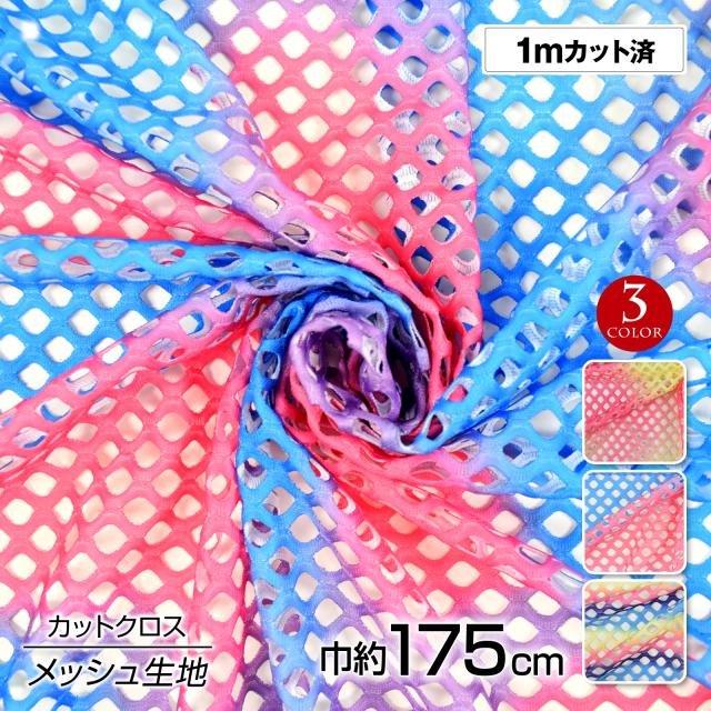 生地 W巾 メッシュ生地(生地巾 約175cmx1mカット済) L12G51 布 ネット生地 カラフル タイダイ柄 ソフト 吸汗 速乾 衣装生地