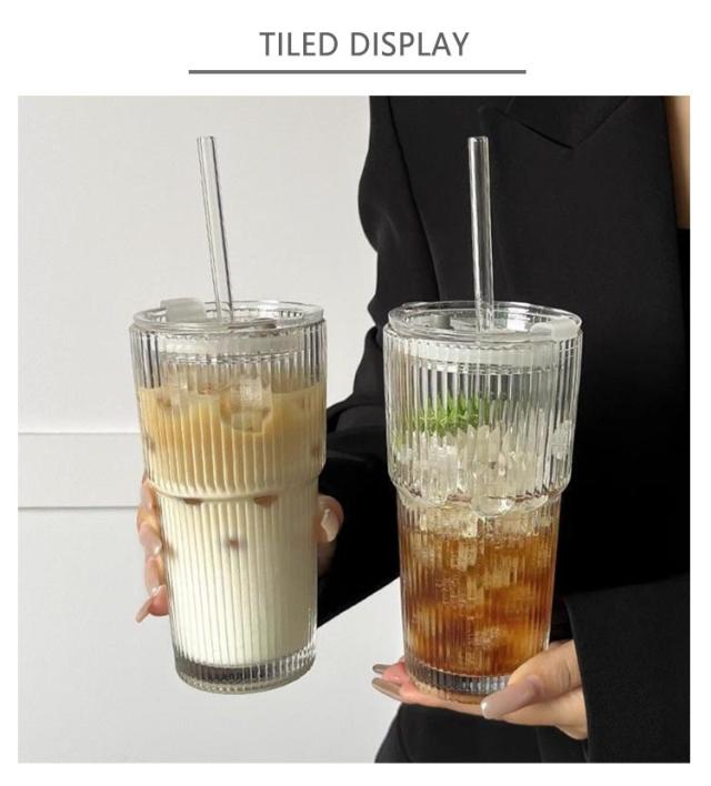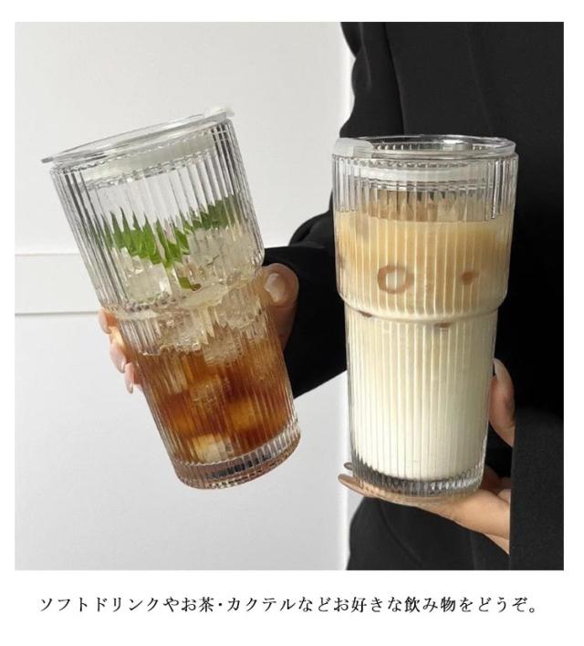 透明なガラスカップ 冷たい飲み物カップ ミルクコーヒーカップ ガラス ミルク ガラスカップ 透明 ストロー付き 水筒 蓋付き コーヒーカップ グラスコップ ティーカップ タンブラー おしゃれ 密封性 漏れ防止 直飲み ぼれない 持ち運び