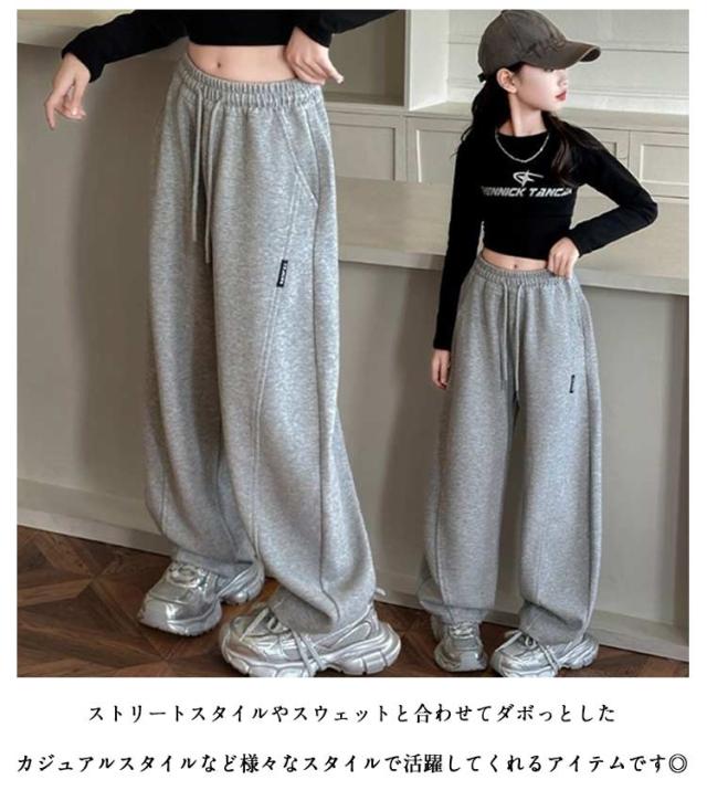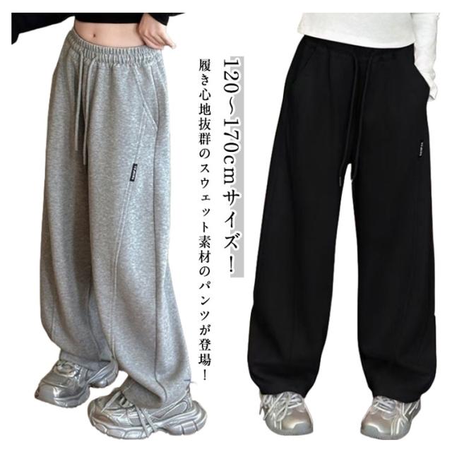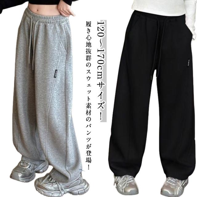 キッズ スウェットパンツ 子供服 女の子 春秋 ワイドパンツ 小学校 おしゃれ パンツ ロングパンツ ウエストゴム ボトムス 無地 韓国 長ズボン ジュニア 子ども服 通園 ダンス 通学 スポーツ 送料無料