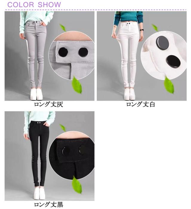 | 八分丈・ロング丈 どんなスタイルにも合わせやすい、コーディネートを楽しめる美脚スキニー。 ウエストはゴム仕様で楽な着脱ができ、着心地も楽ちん! 着回しの利く無地をベースに、ブラック、ホワイトは様々なテイストに合わせやすい定番カラー展開。 さの中に最旬・着心地・着まわしやすさを兼ね備えた一着はこれからの季節、デイリーコーデを豊かにする。 パンプスからスニーカーまで自由なスタイルを楽しめる。 | |