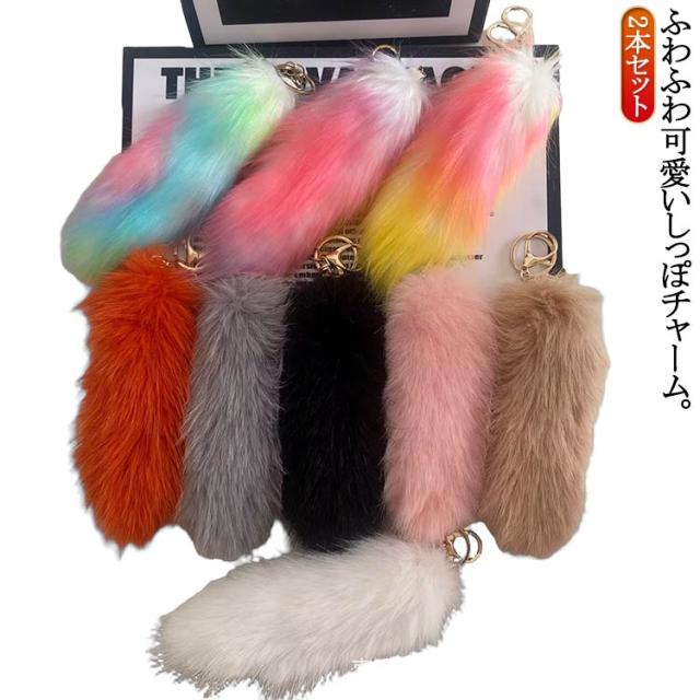 しっぽ ファーチャーム しっぽ キーホルダー ファー キーチェーン バッグチャーム 2本セット フェイクファー 尻尾 ふわふわ ミニ尻尾 テール カラーしっぽ バッグアクセサリー 可愛い 狐のしっぽ 鍵 飾り しっぽアクセサリー 送料無料