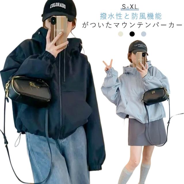 パーカー トップス プルオーバー レディース フード マウンテンプルオーバー キャンプ ウインドブレーカー フード付き ブルゾン ショート丈 長袖 カジュアル 大人 無地 登山 防風 撥水 アウトドア ミリタリー アウター ビッグ フードコート ストレッチ 秋 夏 送料無料