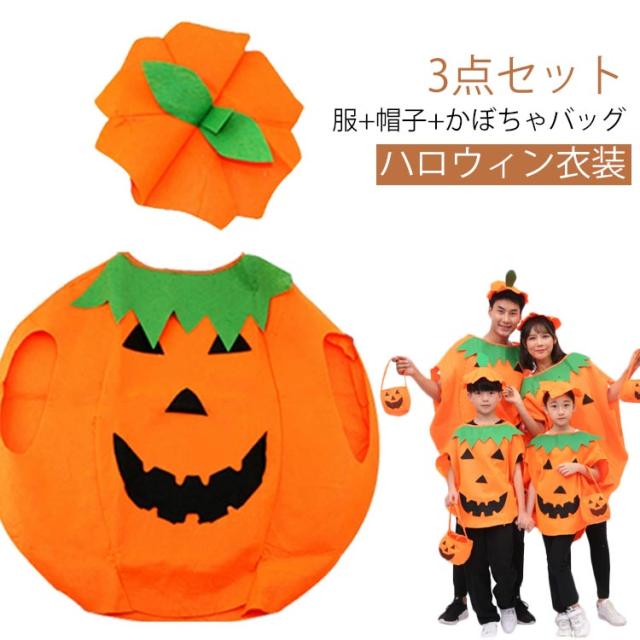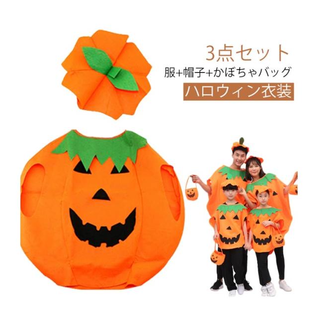 | ハロウィン衣装 3点セット 服+帽子+かぼちゃバッグ ☆かわいいかぼちゃのおばけの仮装。 ☆ハロウィンやイベント、パーティーなどにも☆ | |