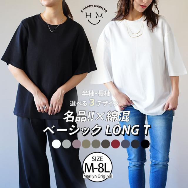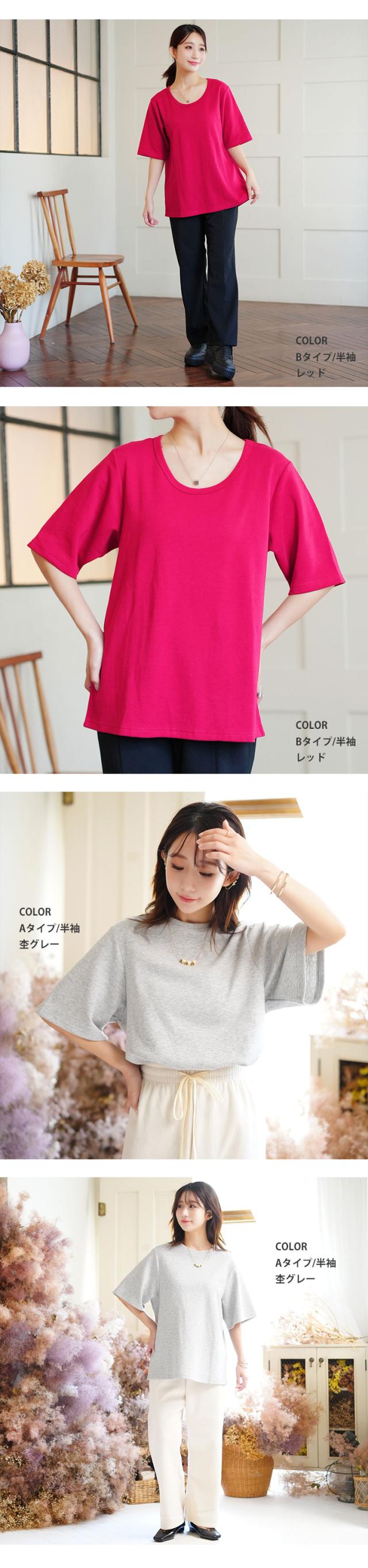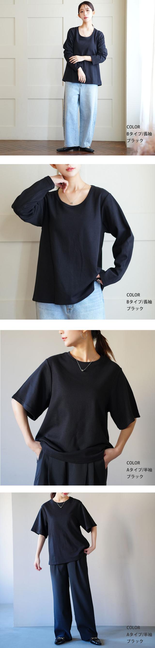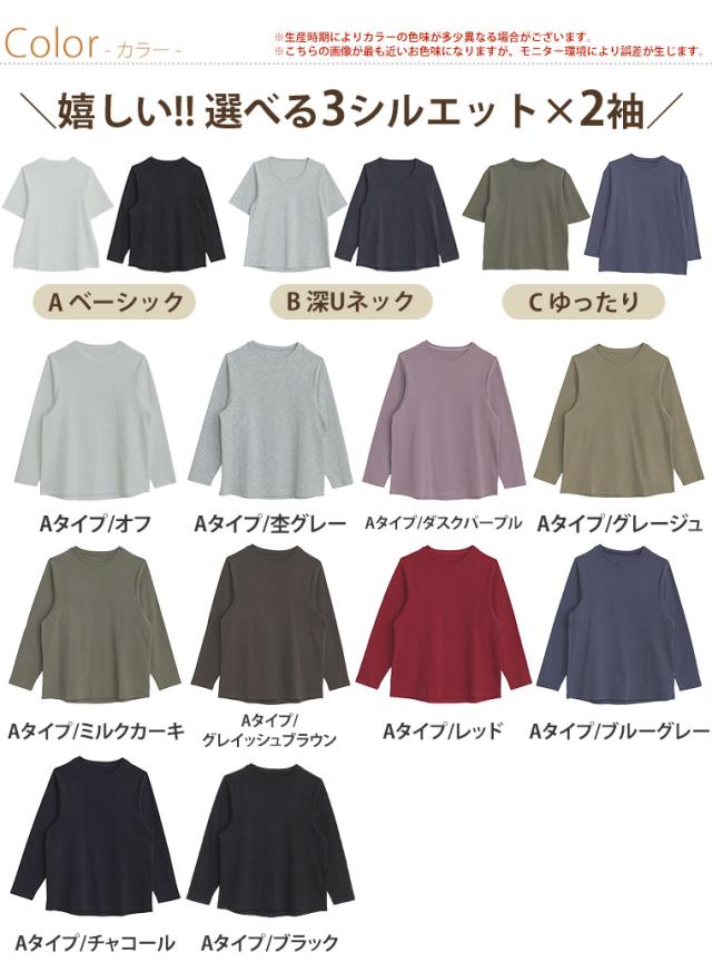 新作 大きいサイズ レディース トップス | 名品! 選べるシルエット 綿 ベーシックロンT コットン Tシャツ ラウンドネック 長袖 半袖 深Uネック [497038] LL 3L 4L 5L 6L 7L 8L