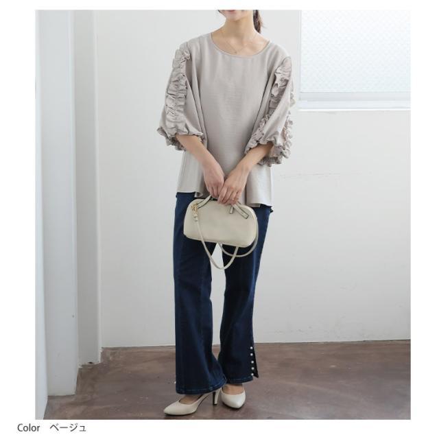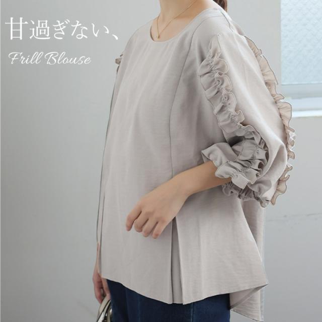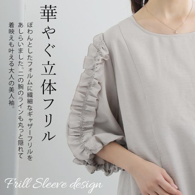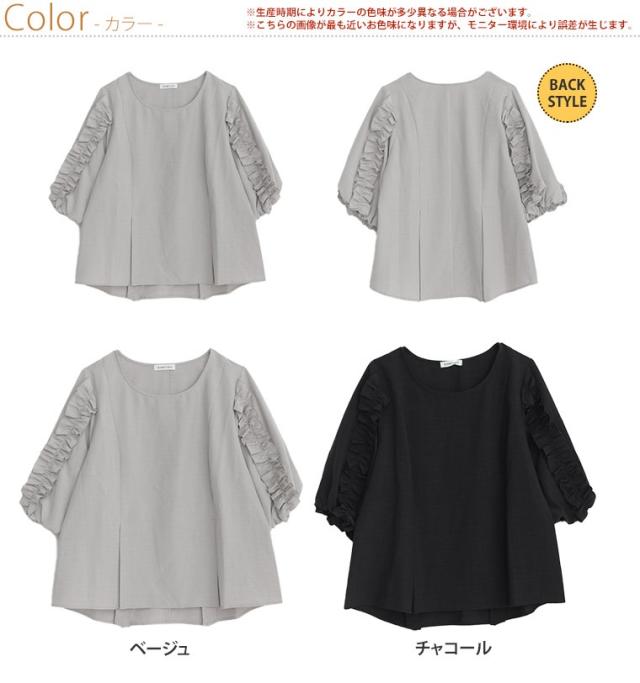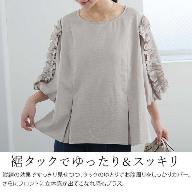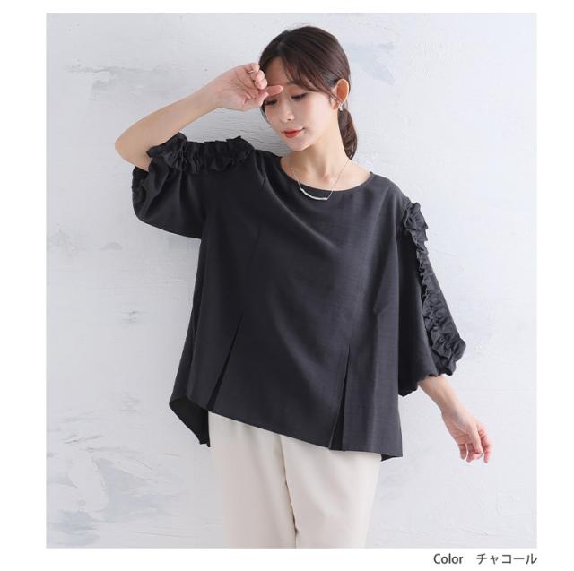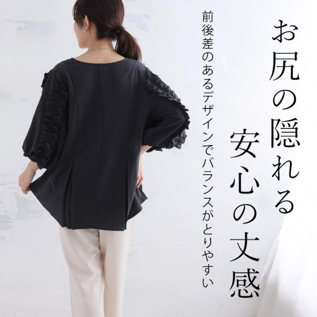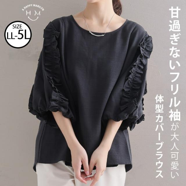 新作 大きいサイズ レディース トップス | 袖フリル プルオーバー [861868] LL 3L 4L 5L