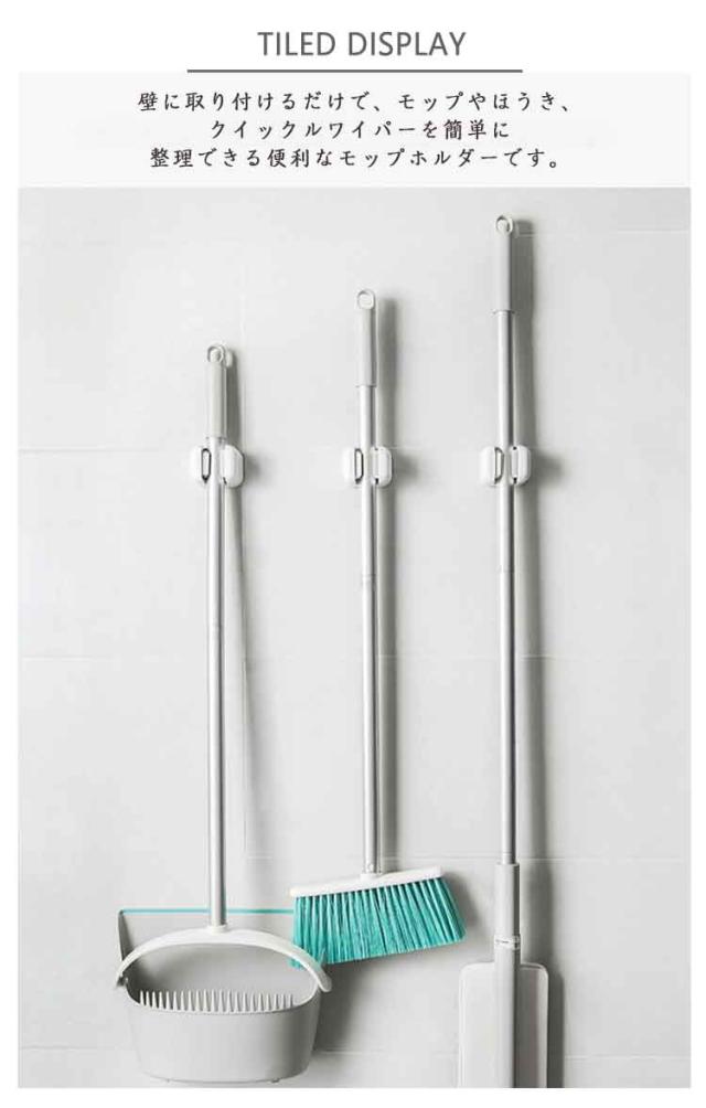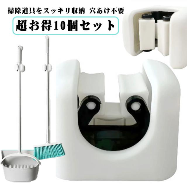モップ収納 掃除用具ハンガー モップホルダー 【お得な10個セット】 フック 【お得な10個セット】 壁掛け 穴あけ不要 強力固定 モップ ハンガー クイックルワイパー対応 キッチン 洗面所 ベランダ 片付け スッキリ整理 省スペース