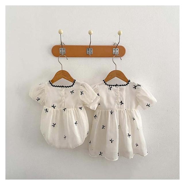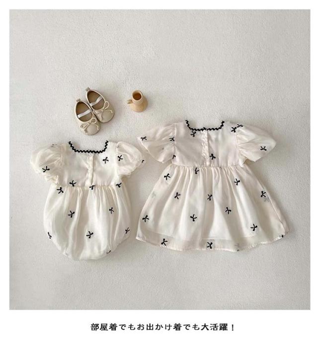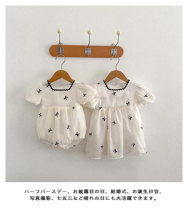 | 姉妹とお揃いで着られるかわいい服です。 出産祝いやちょっとしたプレゼントにおすすめです。 部屋着でもお出かけ着でも大活躍! ハーフバースデー、お披露目の日、結婚式、お誕生日会、写真撮影、七五三など晴れの日にも大活躍できます。 | |