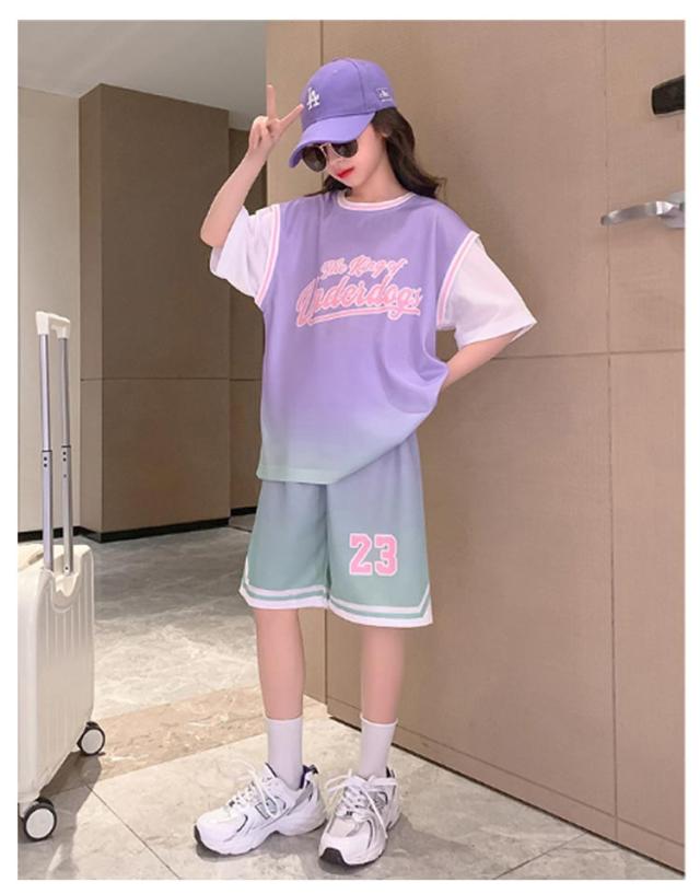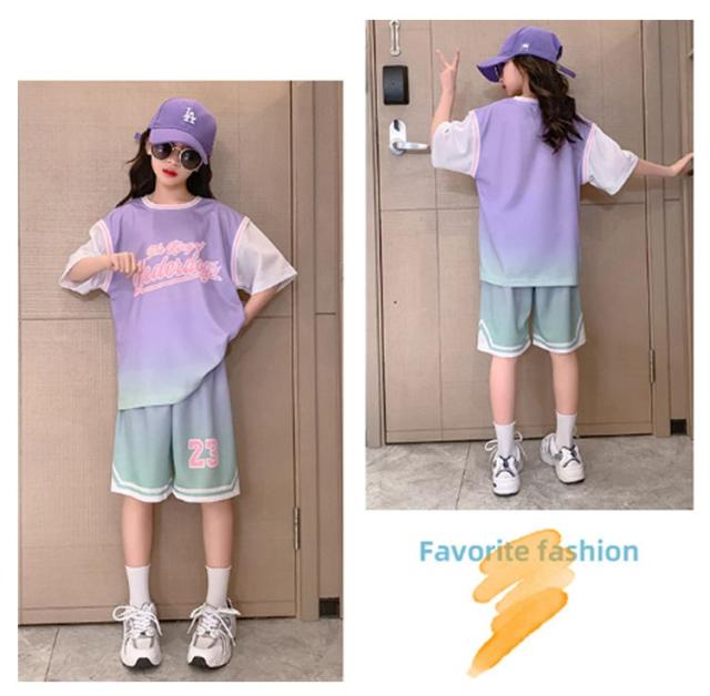 ユニフォーム 団体服 スポーツ用 上下2点セット パープル バスケットボールウエア ピンク 女の子 半袖 速乾 スポーツ用 ハーフパンツ 吸汗 ジュニア 演出服 スポーツウエア トレーニングウエア Tシャツ セットアップ 練習着 120cm 130cm 140cm 150cm 160cm 170cm