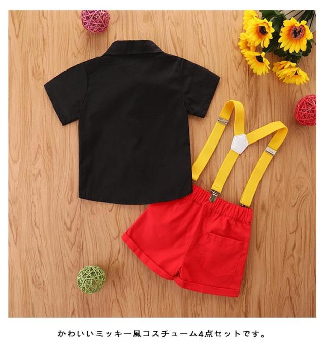 コスプレ キッズ 80-140cm ハロウィン クリスマス 長袖 コスプレ衣装 セットアップ ミッキー 4点セット 男の子 半袖 コスチューム シャツ フォーマルスーツ 子供服 おでかけ 記念写真 パーティー イベント かわいい 誕生日