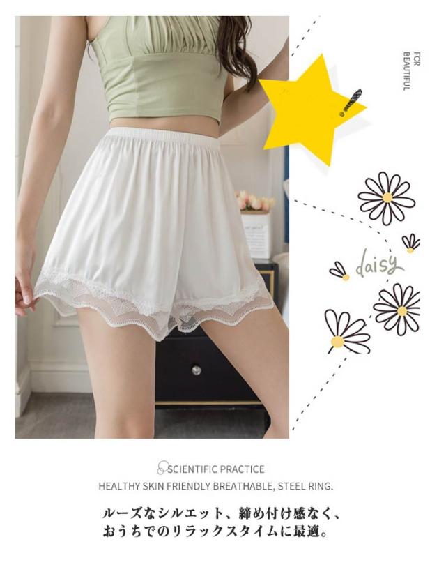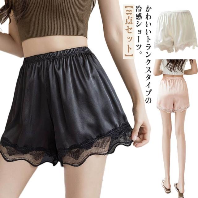 | 【8点セット】 かわいいトランクスタイプの冷感ショーツ。 レース裾仕様で太ももを締めつけないからゆったりラクちん。 ルーズなシルエット、締め付け感なく、おうちでのリラックスタイムに最適。 ワンピースやワイドパンツなど広がりのあるボトムスのペチパンツとしてもお勧め。 | |