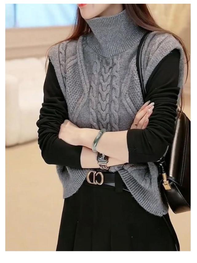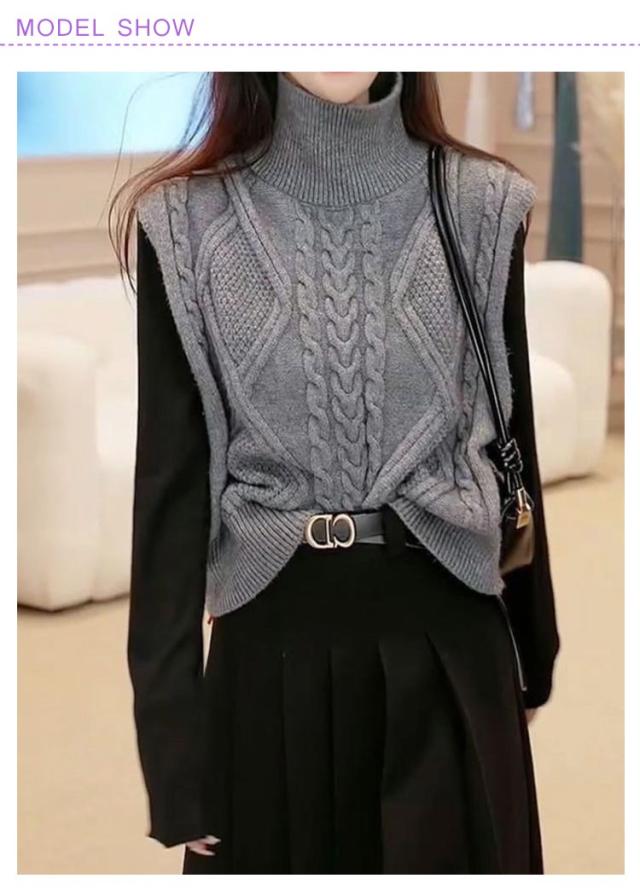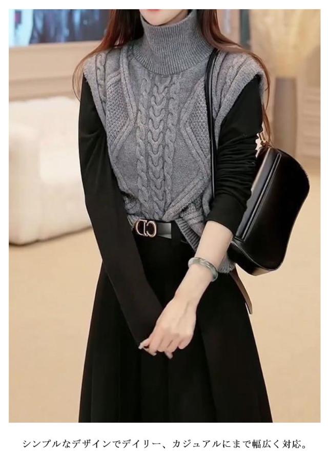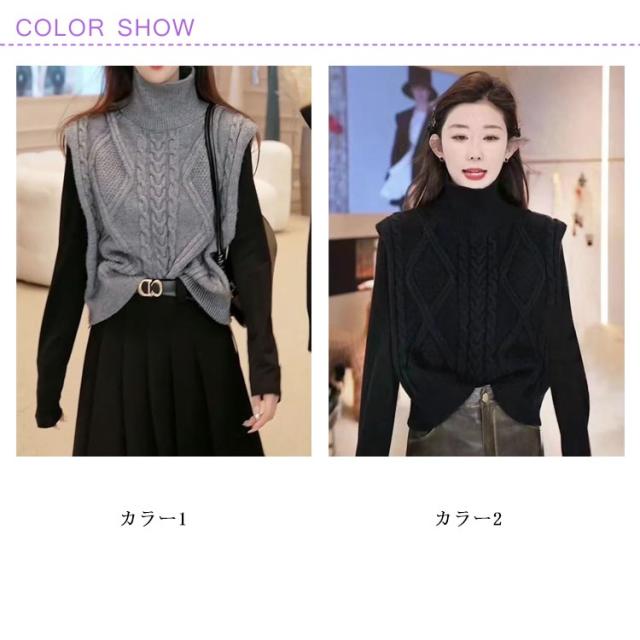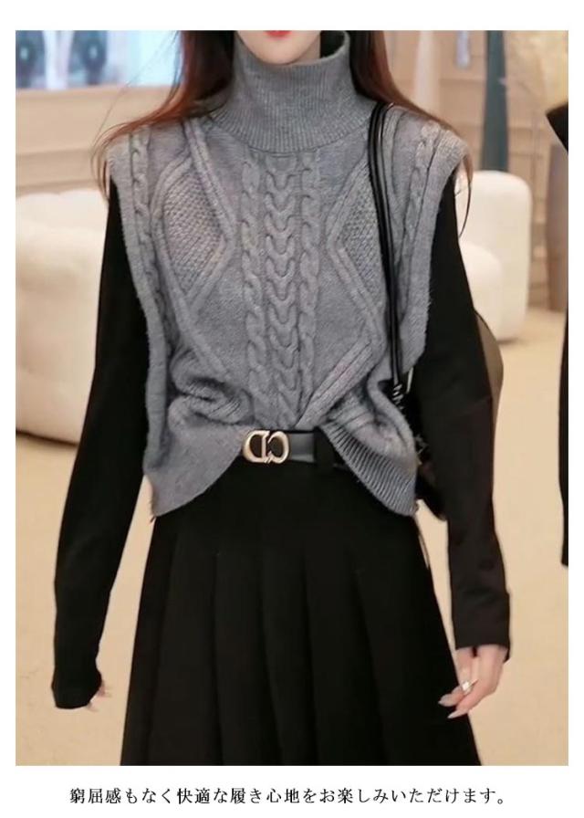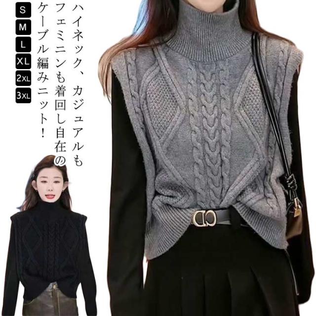 ニットベスト タートルネック ニットチョッキ ベスト ノースリーブ ケーブル編み ハイネック おしゃれ トップス カジュアル レイヤード 着?せ シンプル 大きいサイズ タートルネック S M L XL 2XL