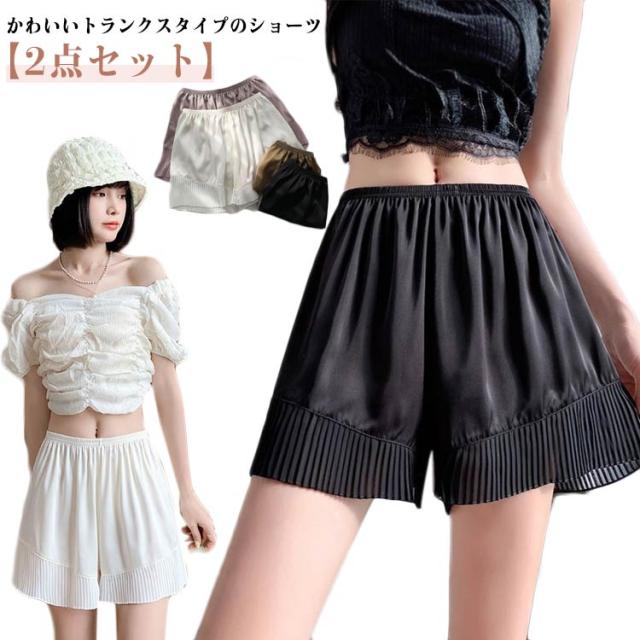 切り替え 下着 プリーツ セット 2点セット トランクスショーツ M レディース ショーツ 女性用 スパッツ トランクス ペチコート ボクサーパンツ ボックスショーツ ゆったり らくちん 婦人 ママ 母の日 ギフト プリーツ L