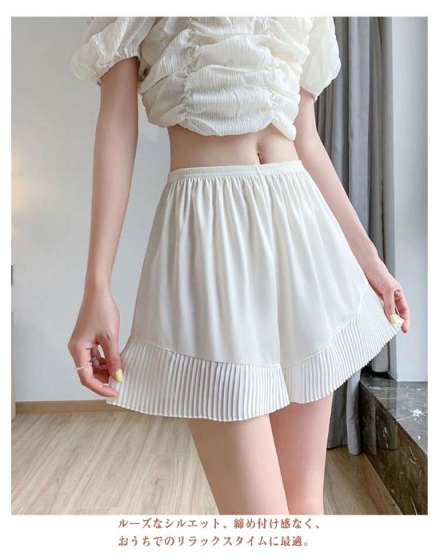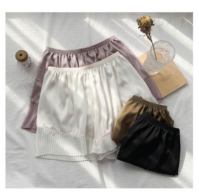 | 【2点セット】 かわいいトランクスタイプのショーツ。 プリーツと切り替え裾仕様で太ももを締めつけないからゆったりラクちん。 ルーズなシルエット、締め付け感なく、おうちでのリラックスタイムに最適。 ワンピースやワイドパンツなど広がりのあるボトムスのペチパンツとしてもお勧め。 | |