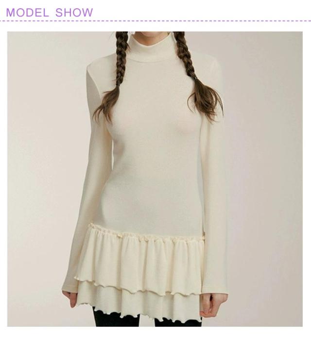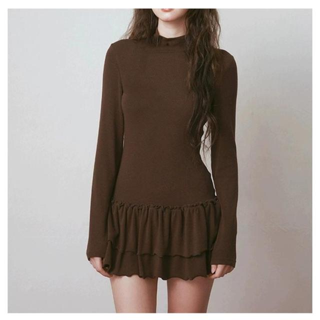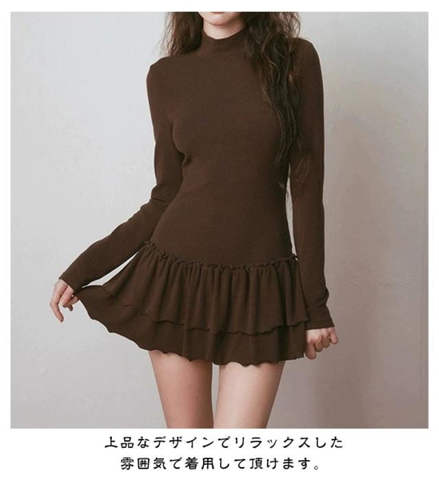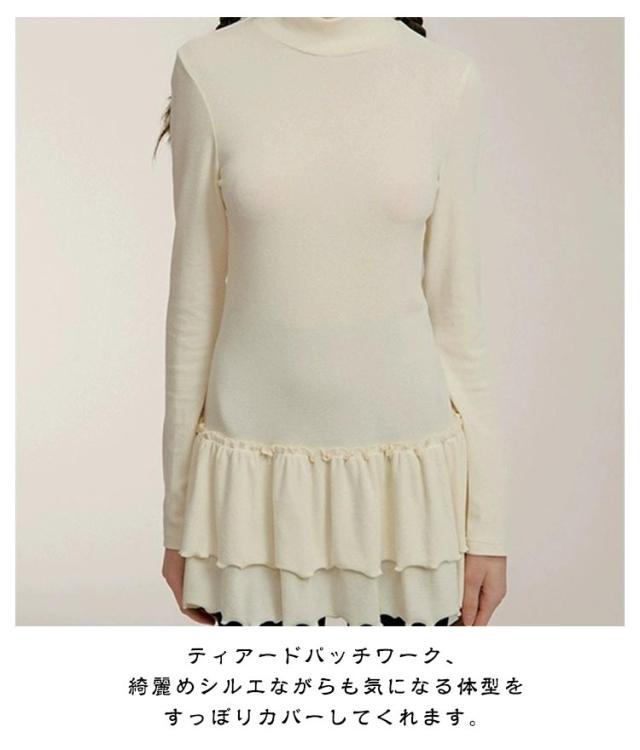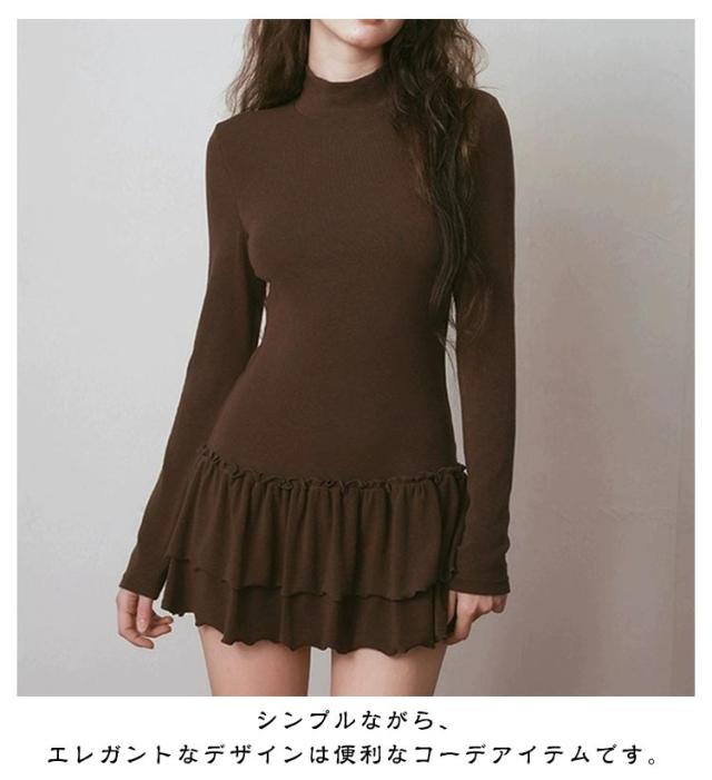 モックネック Tシャツワンピース きれいめ ロングTシャツ インナーワンピース 長袖 ミニ丈ワンピース レイヤード スリム 着?せ フリル M モックネック XL