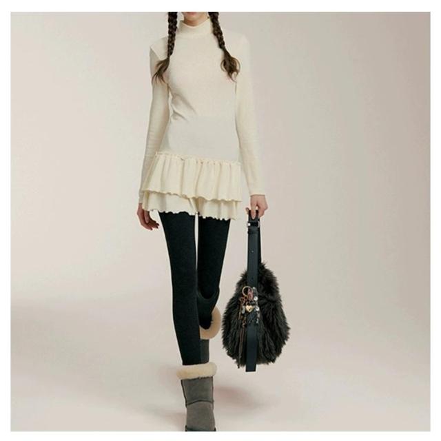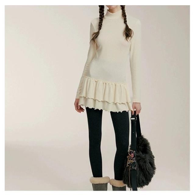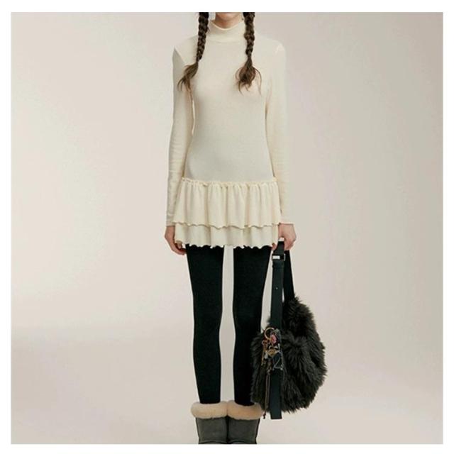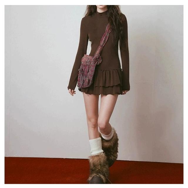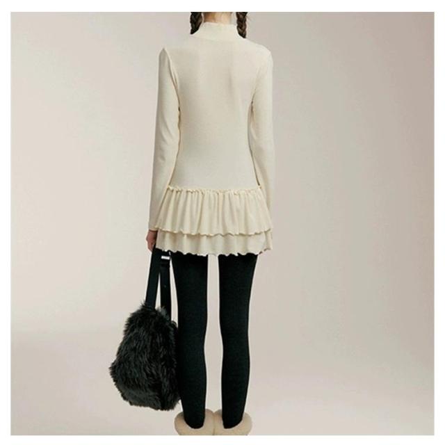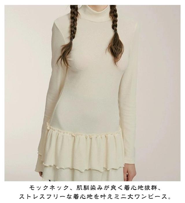 スリム ミニ丈ワンピース ロングTシャツ きれいめ 着?せ モックネック 長袖 レイヤード インナーワンピース L フリル M モックネック XL
