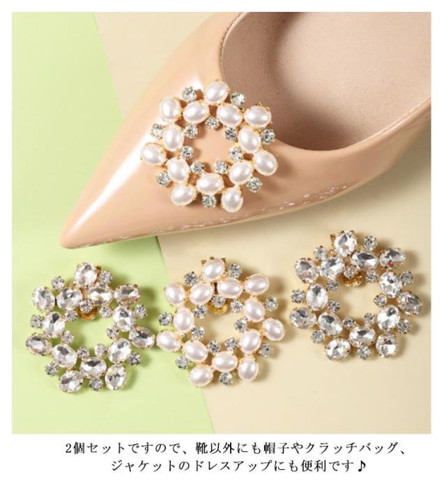 ラウンド 2個1組 お呼ばれ パール キラキラ 装飾品 シューズパーツ 卒園式 結婚式 シューズクリップ パンプス 飾り 入園式 丸 レディース 女性 ビジュー 取外しOK 入学式 卒業式 パンプス 靴 クリップ 付ける シューアクセサリー 2個1組 着せ替え