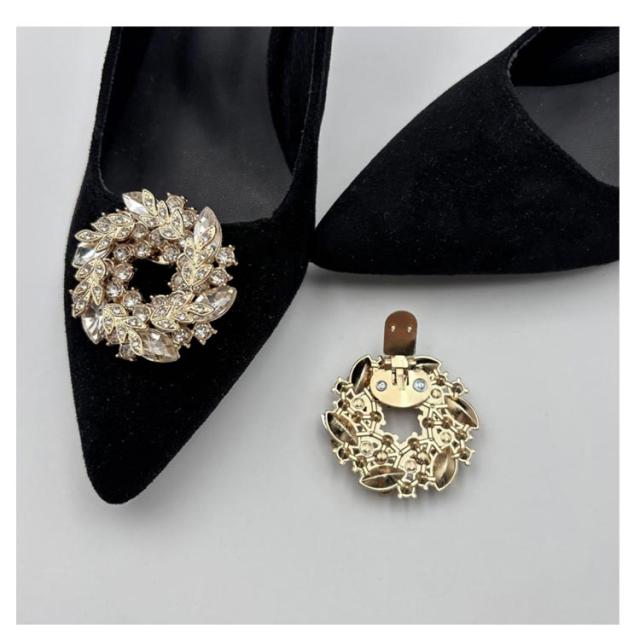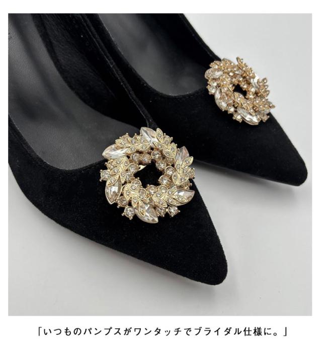 飾り シューズクリップ ラウンド パンプス シャンパン シューズアクセサリー お呼ばれ キラキラ パンプスクリップ 結婚式 ゴージャス ビジュー クリップ 丸 取外しOK 着せ替え レディース 女性 セレモニーシューズ 2個1組 装飾品 シューズパーツ かわいい