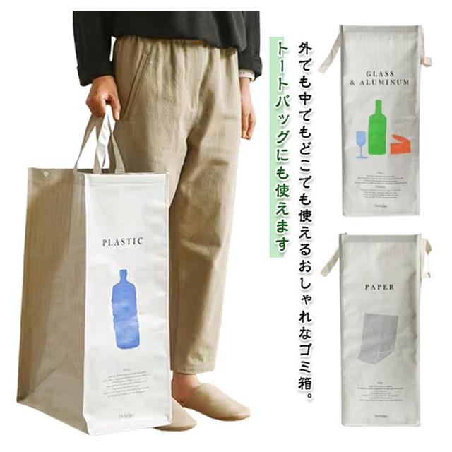 | 外でも中でもどこでも使えるおしゃれなゴミ箱。トートバッグにも使えます。 持ち運びに便利なハンドルと、3つを連結して使用することのできる外側スナップボタン付き。 ペットボトルや空き缶の分別、色物仕分けや家族別のランドリーバッグ、お子様のおもちゃ収納、野菜・食材ストッカーなどなど、屋内外を問わず様々なシーンでお使いいただけます。 海や川でのレジャーはもちろん、ご自宅で収納ツールとしても活躍します。 使わないときは、折りたたんでコンパクトにできるので便利にお使い頂けます。 さらに水に強い素材なので、汚れても丸洗いできるのでお手入れも簡単♪ | |