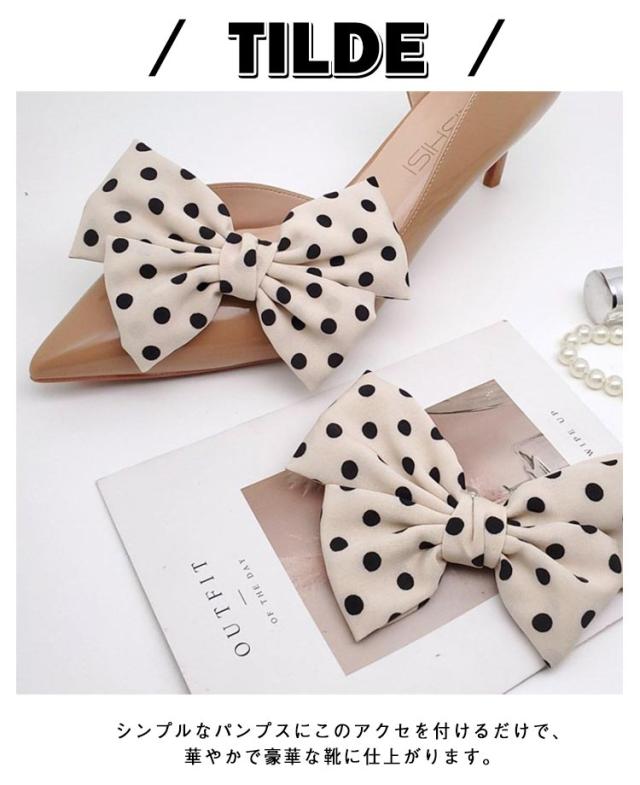 シューズアクセサリー パンプスクリップ ドット柄 水玉柄 かわいい ビジュー リボン シューズクリップ 結婚式 ビッグリボン パンプス 飾り 装飾品 お呼ばれ リボンクリップ クリップ シューズクリップ シューパーツ 取外しOK 着せ替え レディース 女性 靴飾り