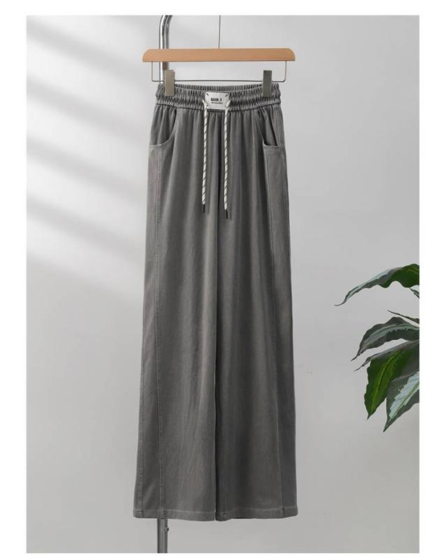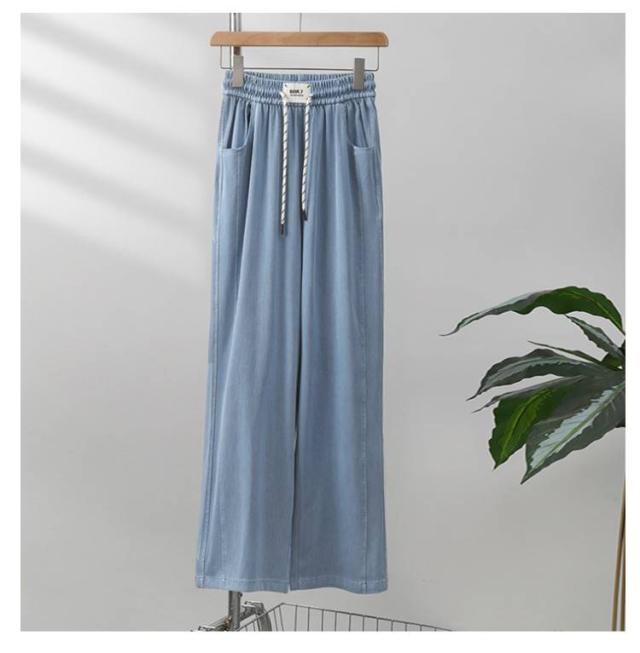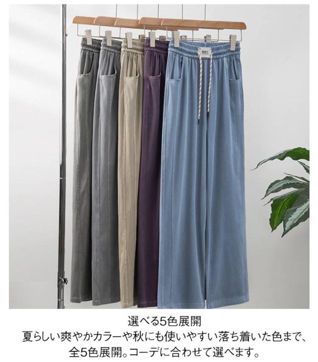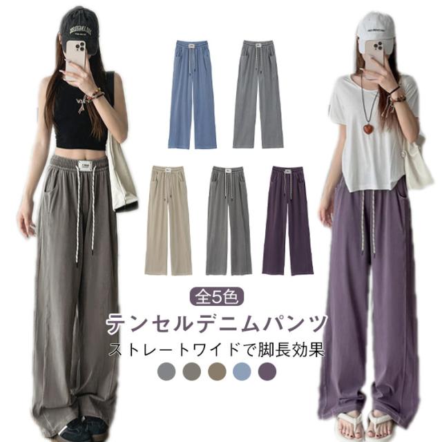 さらてろ 秋用 ゴム デニム レディース 涼しい ワイド テンセル ストレートパンツ ロング丈 ワイドパンツ ボトムス パンツ デニム テンセル デニムワイドパンツ サマーデニムパンツ 薄手 夏 テンセルデニムパンツ カジュアル キレイめ カジュアル 脚長