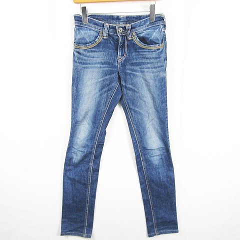 【中古】ドミンゴ Domingo デニム パンツ ストレッチ SS ブルー ウォッシュ加工 小さいサイズ kz12724 レディース