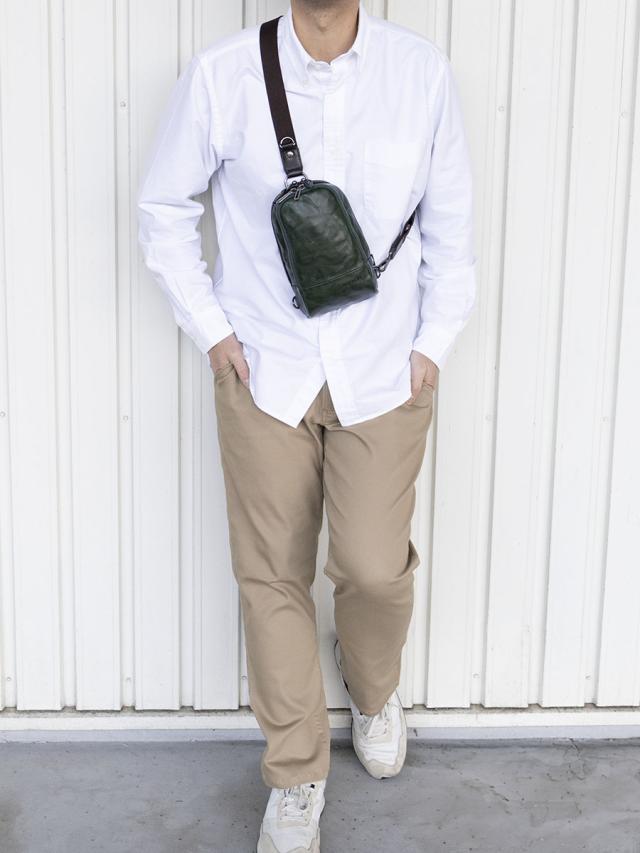 前に掛けても後ろに掛けてもおしゃれ。男女問わずジェンダーレスでお持ちいただけます。