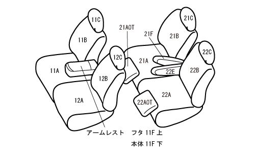 後席:オットマン(マルチユースフラップ)とアームレスト無し車