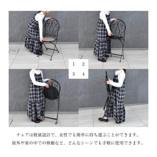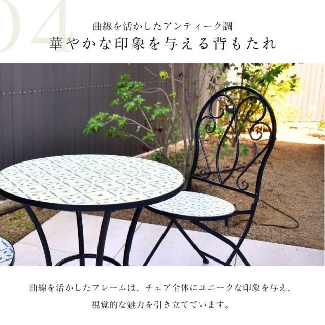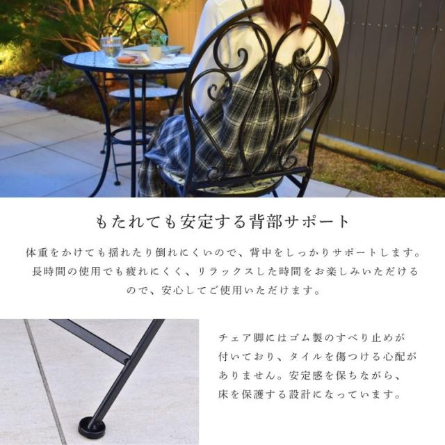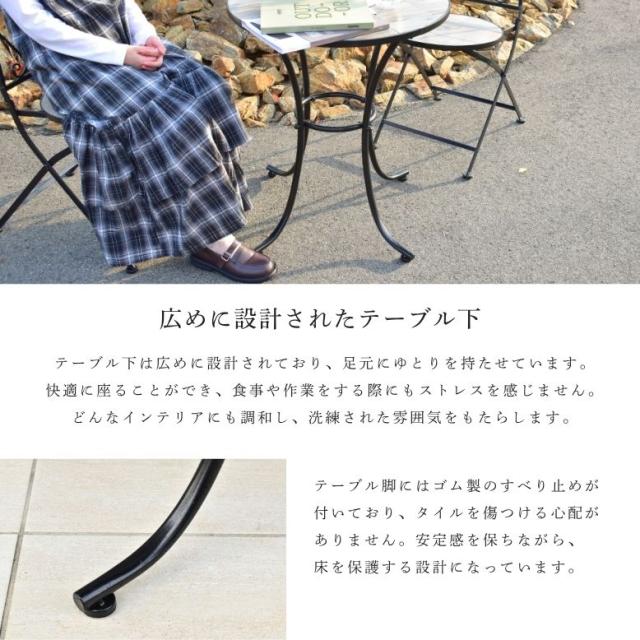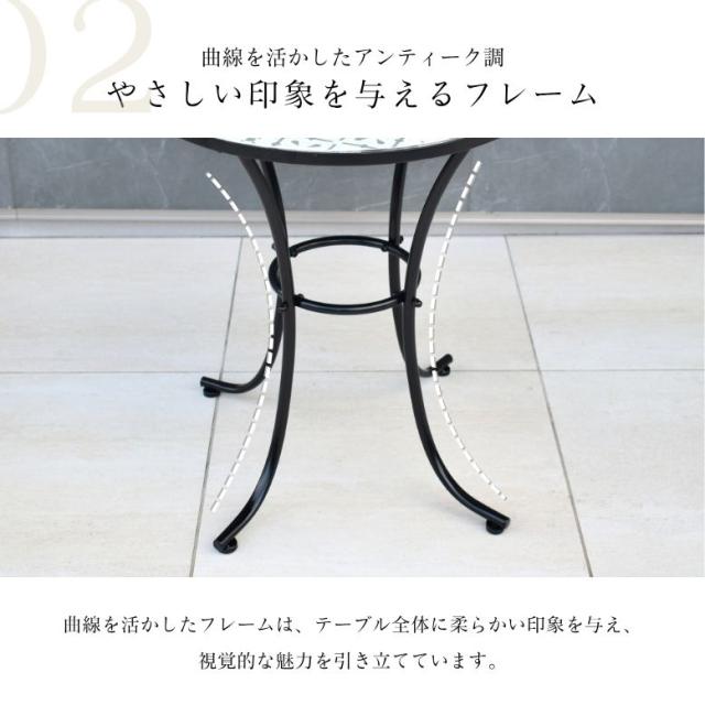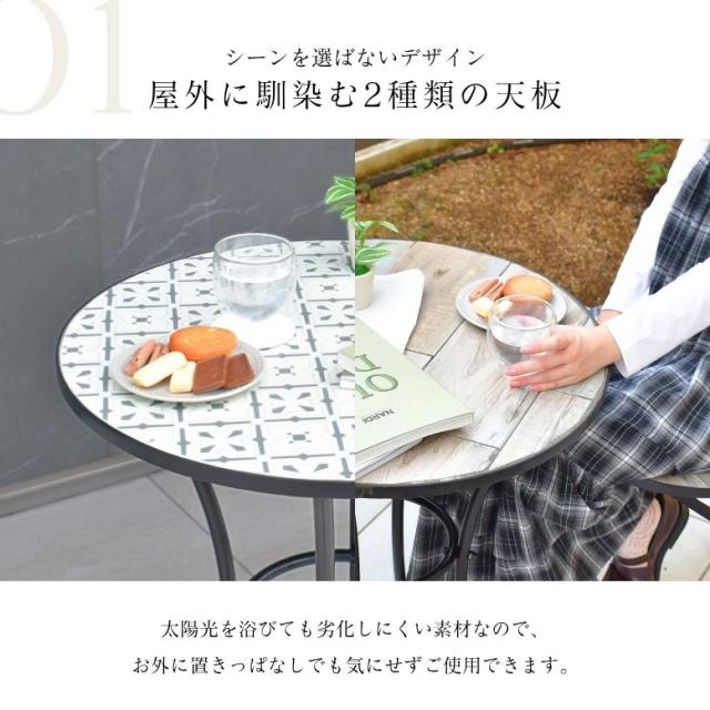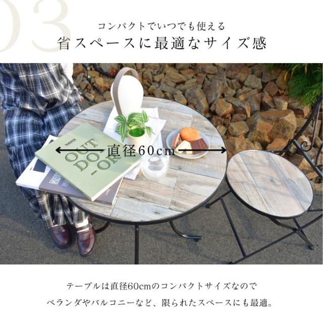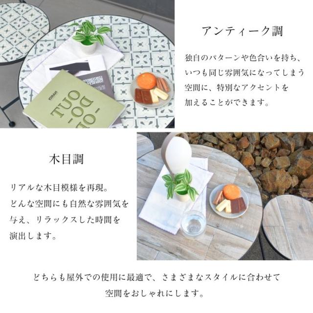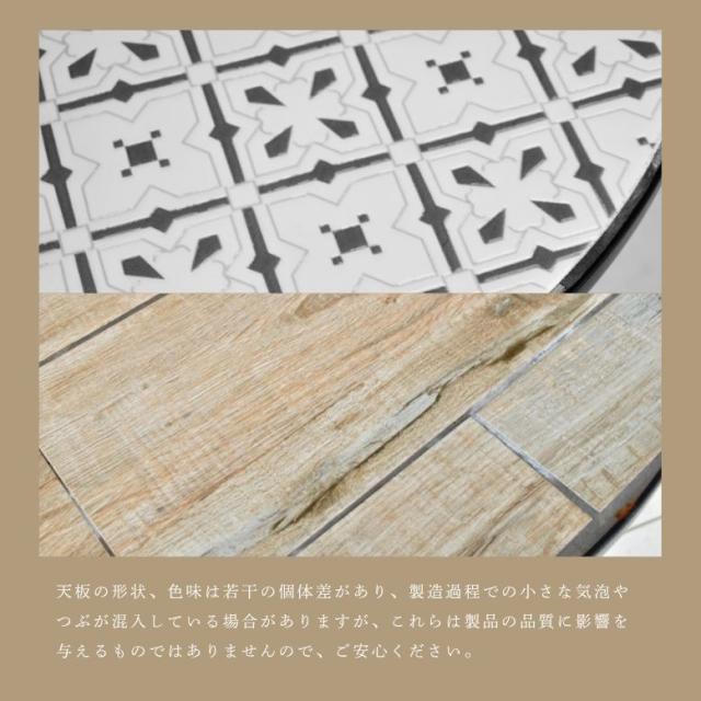 ガーデンテーブル テーブルセット φ60cm テーブル チェアー 木目調 タイル天板 アイアン カフェ バルコニー バルコニーテーブル カフェテーブル 屋外家具 アンティーク調 直径60cm タイルテーブル 3点セット【大型宅配便】