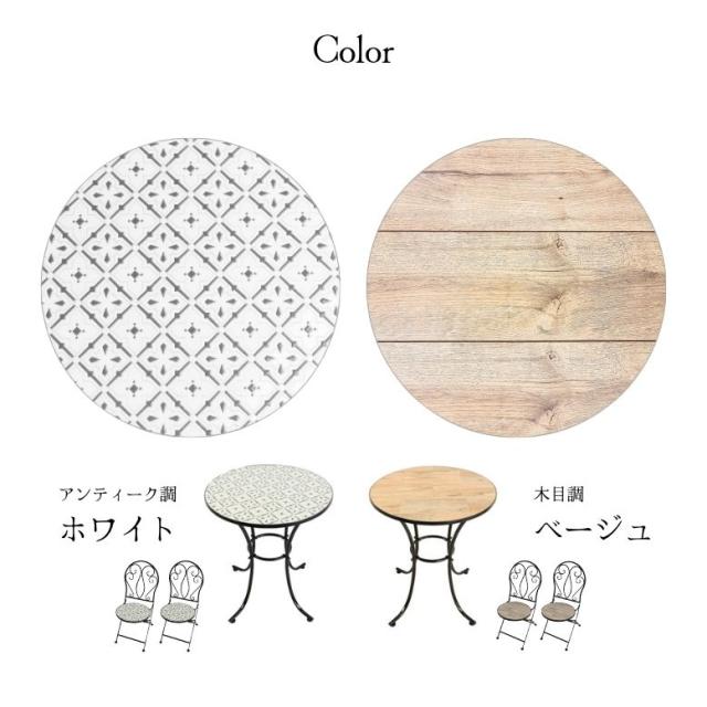 アンティーク調ホワイトと木目調デザインのタイルテーブルセット